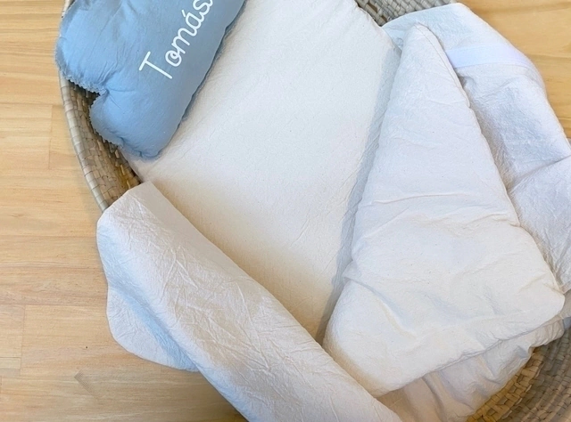 Realizado en tusor 100% algodón, con colchon de espuma de 2 cm y manda central rellena con guata de 200gr.