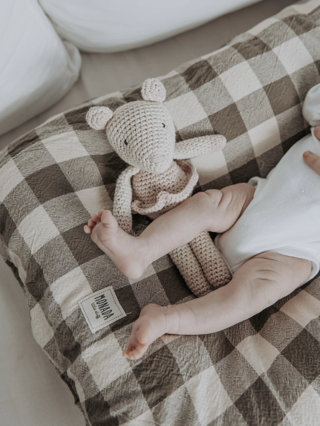 Realizado en hilo 100% algodón, mide 25 cm de alto. Ideal para los bebés por su delicadeza y suavidad.