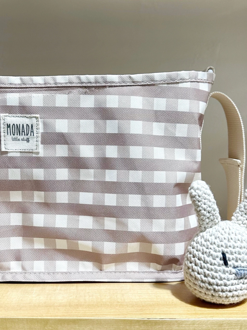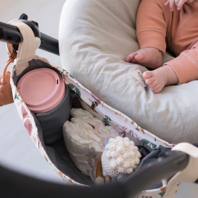 Cuenta con separaciones internas, dos laterales para botella o mamadera, y en el del medio tb cuenta con un bolsillo con cierre.