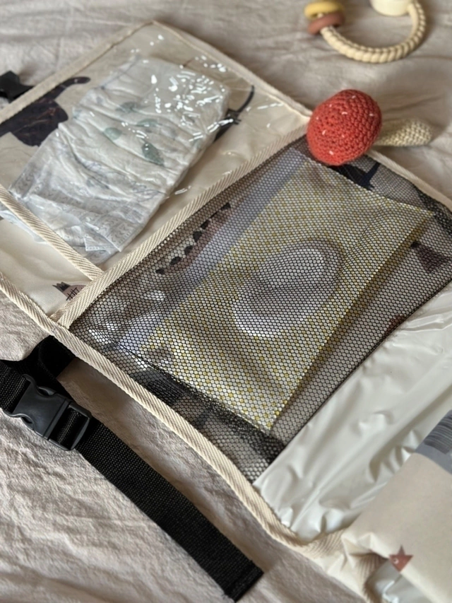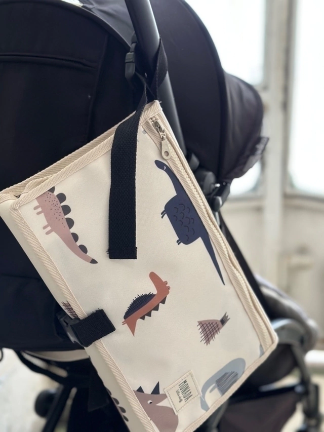 Nuestro cambiador Viajero elaborado en cordura estampada, gracias a su manija con broche es ideal para llevar colgado del cochecito, en tu cartera o en la pañalera con todas esas cosas SOS que necesitamos para hacer el cambio de pañal. Sus compartimientos o bolsillos tienen un tamaño indicado para meter pañales, pomadas, algodón y toallitas. Su parte impermeable y acolchada hace que todo sea mas práctico a la hora de cambiar a nuestro bebé mientras el se siente cómodo y seguro.
